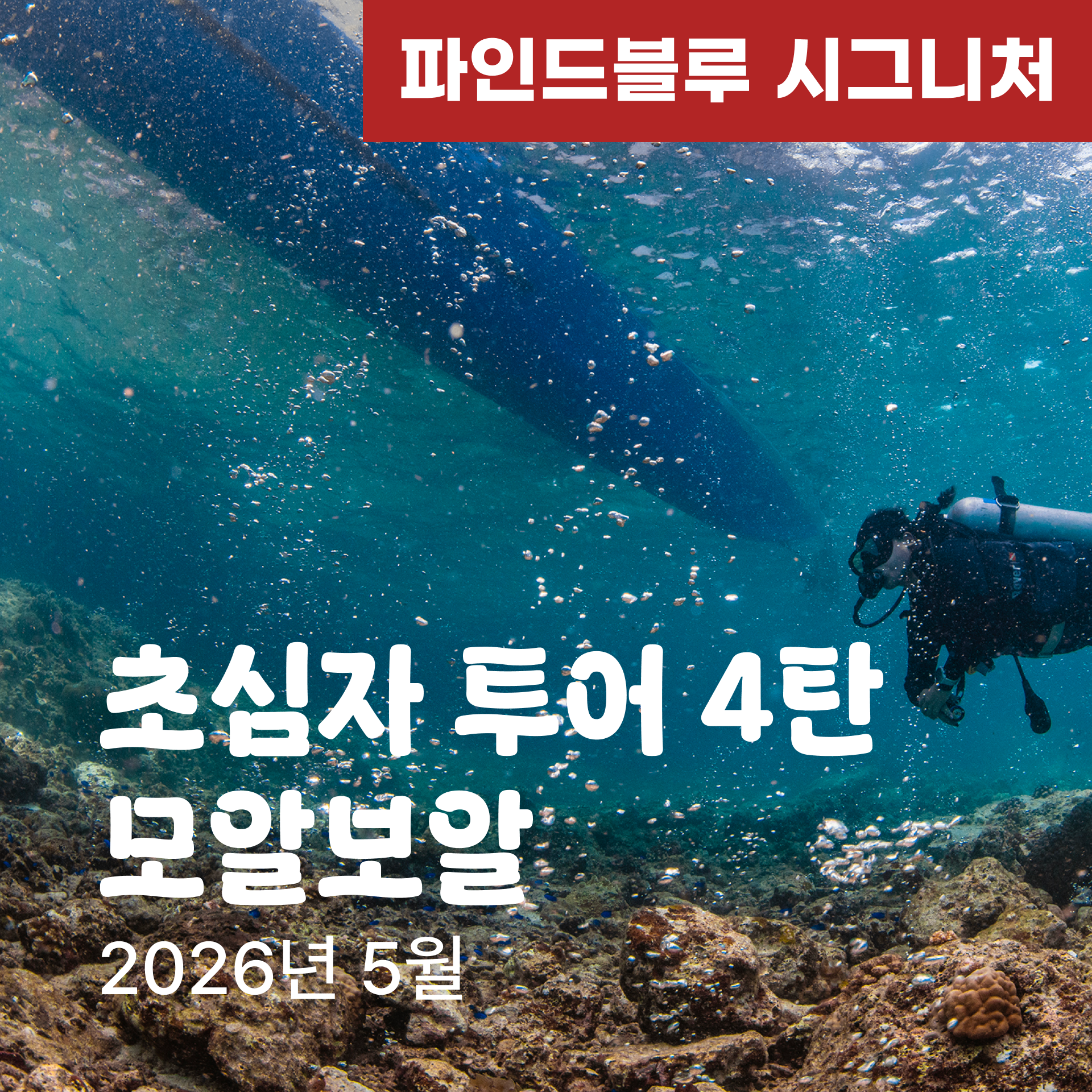 저희의 꿈은 전세계 모든 바다에서 유영하는 것입니다. 다이빙에 대한 열정과 꾸준한 활동으로 다양한 바다를 경험한 뒤, 새로운 정보를 업데이트 하여 소개해드리겠습니다. 파인드블루의 목적지는 전세계 모든 바다 입니다. 저희의 꿈에 동행해주세요.
