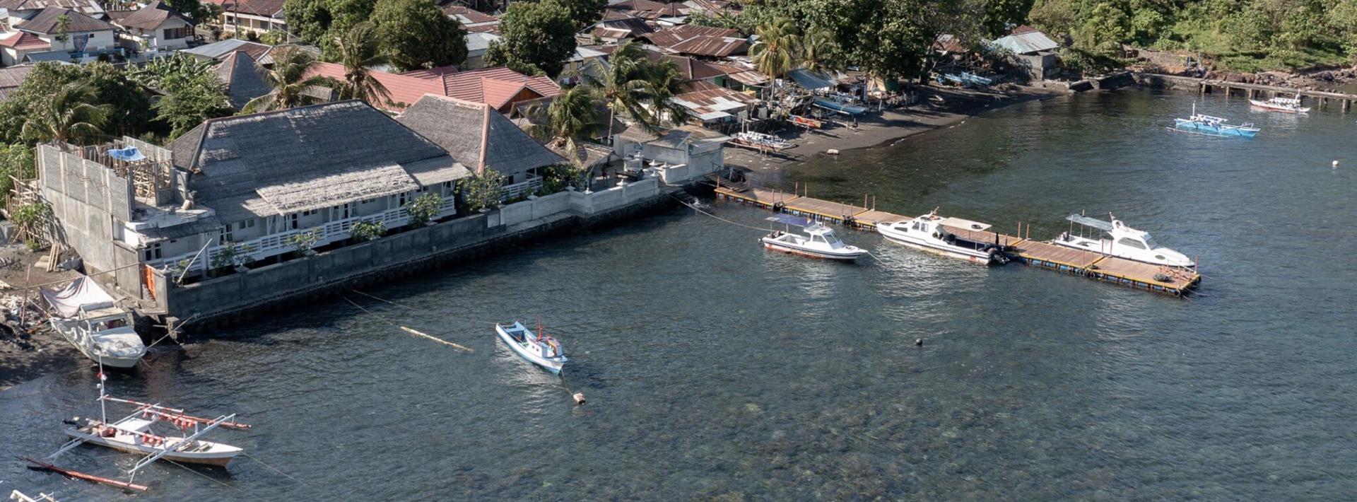 YOS DIVE LEMBEH는 인도네시아 북술라웨시 주 비퉁(Bitung)시의 카사와리(Kasawari) 지역에 자리한 리조트로, 마나도 공항에서 차량으로 약 1시간 거리에 있어 렘베섬에 있는 리조트보다 접근성이 뛰어납니다. 마나도 섬 동쪽 끝자락에서 렘베섬을 마주한 해안 풍경이 인상적이며, 조용하고 아늑한 분위기 속에서 다이빙과 휴식을 모두 즐길 수 있습니다.