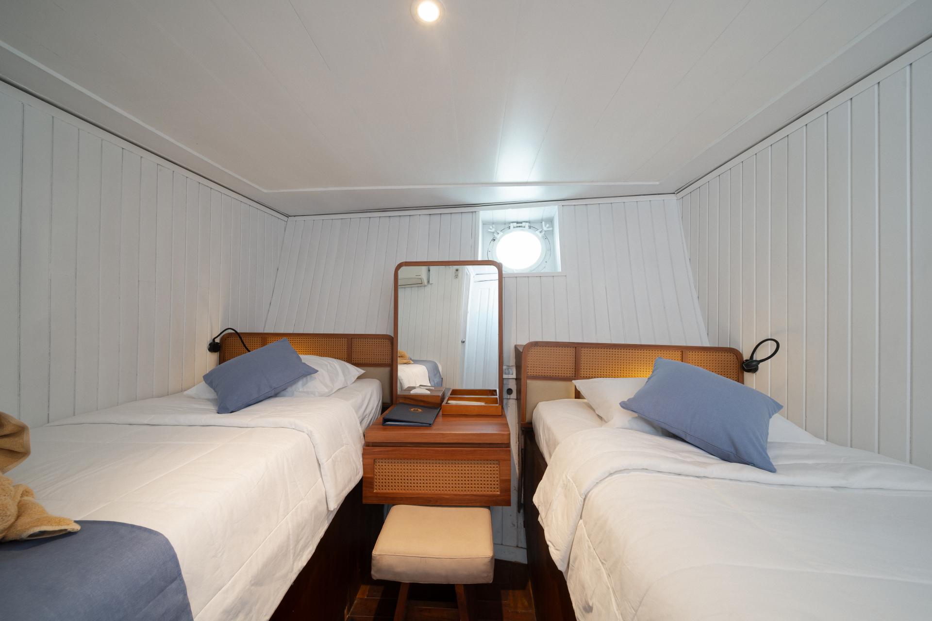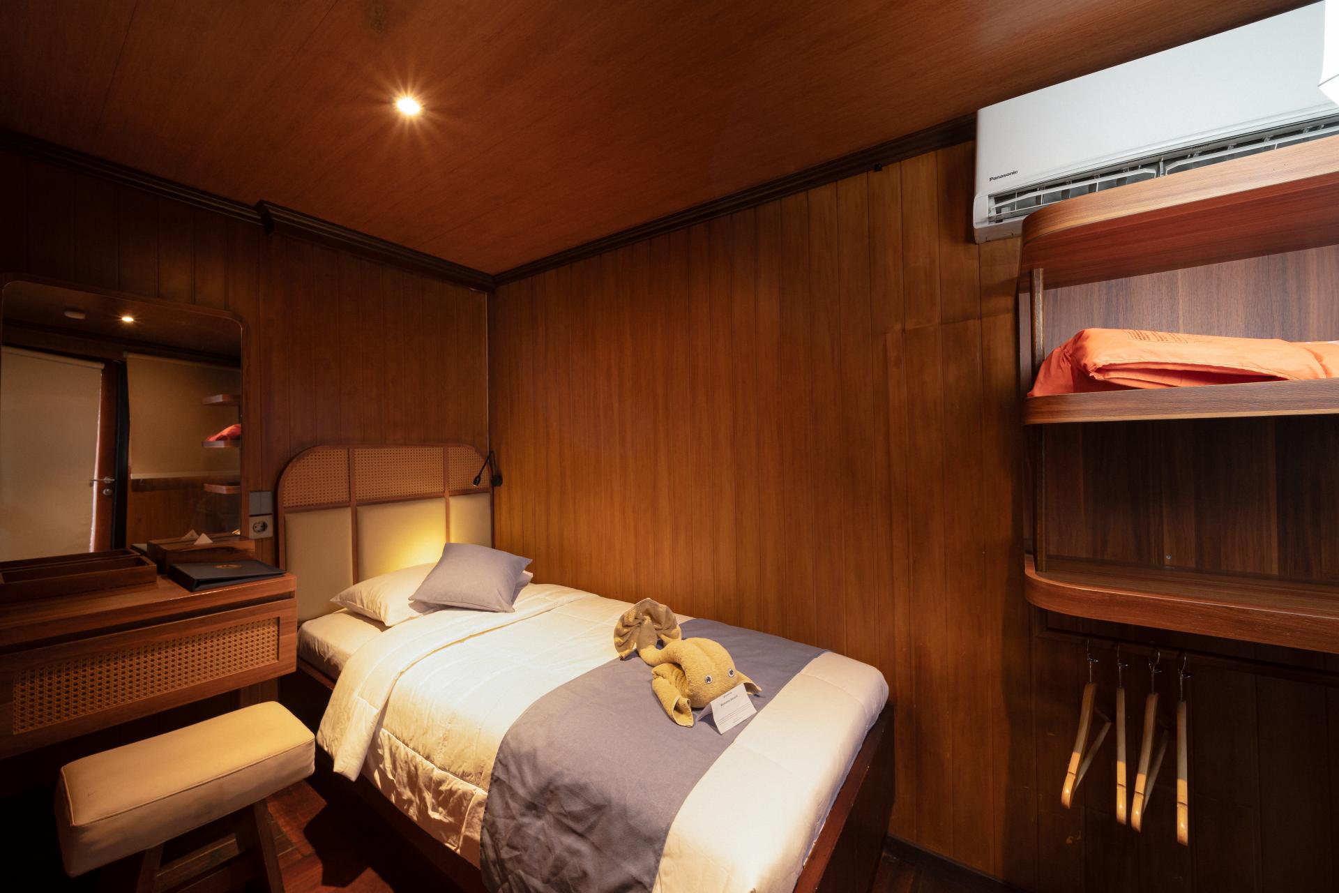 총 14개의 객실 중 미들덱 4개만이 싱글베드로, 빠른 예약을 통해서 같은 금액으로 1인 사용이 가능합니다. 모든 객실에 화장실/샤워실이 있으며 객실내 세면대가 있어 편리함이 장점입니다. 또한 개인용 드라이기와 슬리퍼, 가운이 구비되어 있으며 바다 환경을 보호하기 위해 플라스틱 페트병을 사용하지 않고 알루미늄 개인 물통을 나누어주는 세심함이 돋보이는 친환경적 보트입니다. 자체 정화 시설이 있어 물을 아낌없이 사용할 수 있는 것 또한 여성 다이버들에게 가장 큰 메리트입니다.